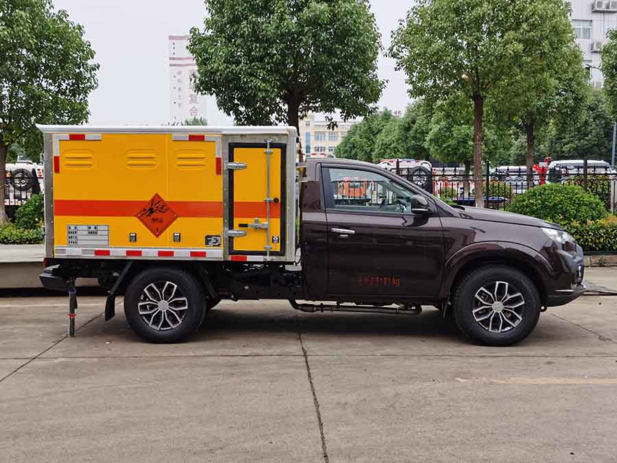 上裝配置:整車尺寸:5370X1960X2090(mm),廂體尺寸:2250X1820X1100(mm),廂體為雙層金屬結(jié)構(gòu),外板采用靜電屏蔽冷軋鋼板,中間填充B1級(jí)阻燃泡沫,內(nèi)飾為鋁板。廂體上側(cè)安裝防雨通風(fēng)透氣孔。底板為平板,上鋪防靜電膠皮,廂體右側(cè)前開單側(cè)門帶隔倉,廂內(nèi)兩側(cè)加裝固定貨物臥環(huán),門框帶防盜,頂部帶煙霧**報(bào)器。